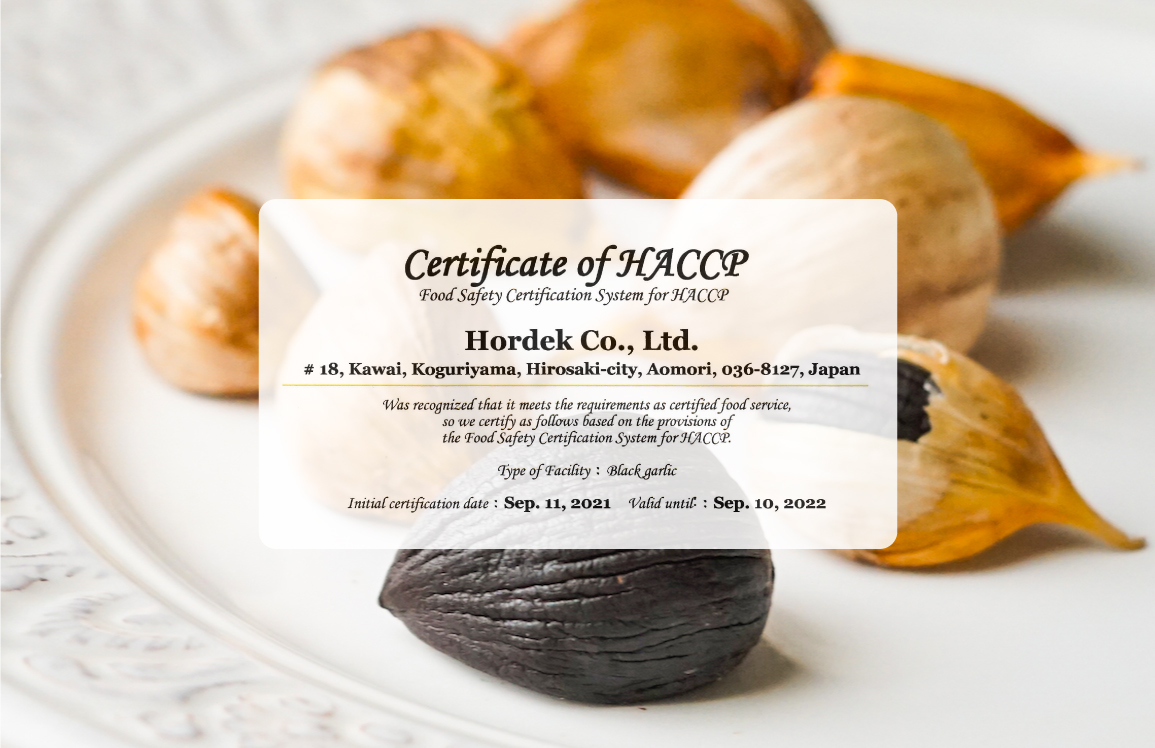私たちは、加工食品の国際安全基準である、HACCP(ハサップ)認証を取得しております。