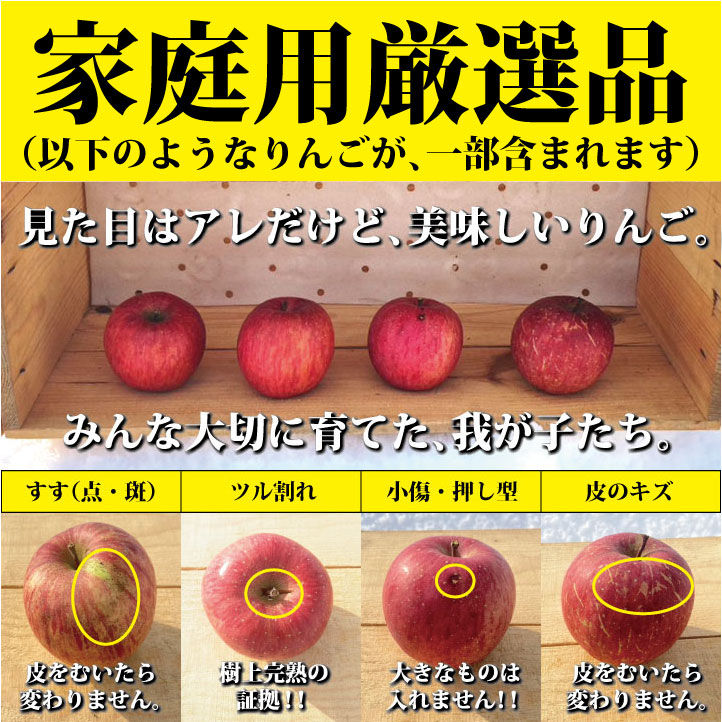 お客さまへ安全で美味しいりんごをお届けするために、商品には万全を期しておりますが、万が一商品に不具合(軟化、腐れ、果肉まで広がった芯カビ、過度な蜜褐変、配送時の事故によるキズ等)がございましたら、「ご注文番号」をご記入のうえ、不良品の個数、状態を【お問い合わせフォーム】よりご連絡ください。メッセージを確認次第、速やかに問題があった個数分の返金にて対応させていただきます。