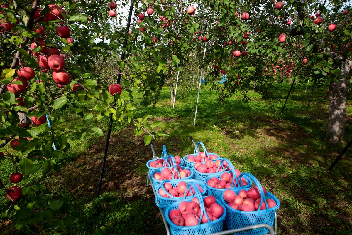 私たちはあえて伝統的な栽培方法にこだわり、一本一本の木に、丁寧に手をかけ、大自然の中でノビノビと育てる事で、りんご本来の美味しさを追求しています。